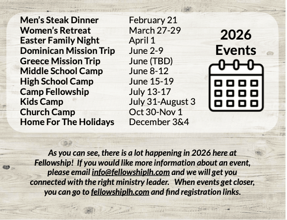 You can always find the latest information of what is happening in the Sunday Bulletin.